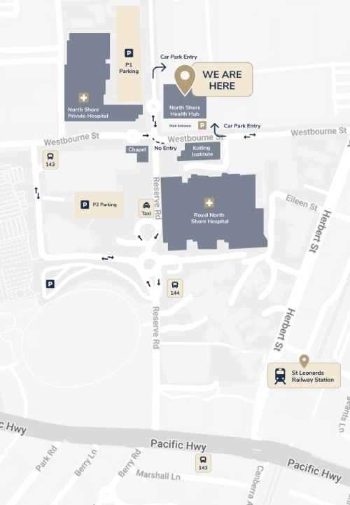 * Please note that parking in P1 (North Shore Private Hospital) parking building is often full after 9am. We recommend planning ahead.